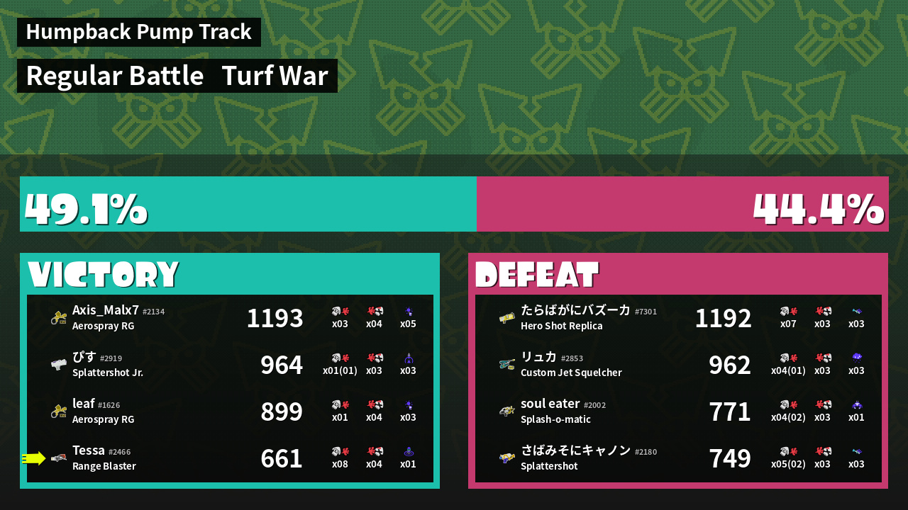 | Medals | #1 Overall Splatter #1 Popular Target #1 Enemy-Base Inker | ||