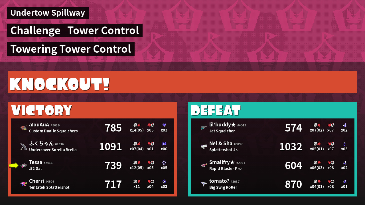 | Medals | #1 Splat Assister #1 Checkpoint Breaker #1 Killer Wail 5.1 User | ||