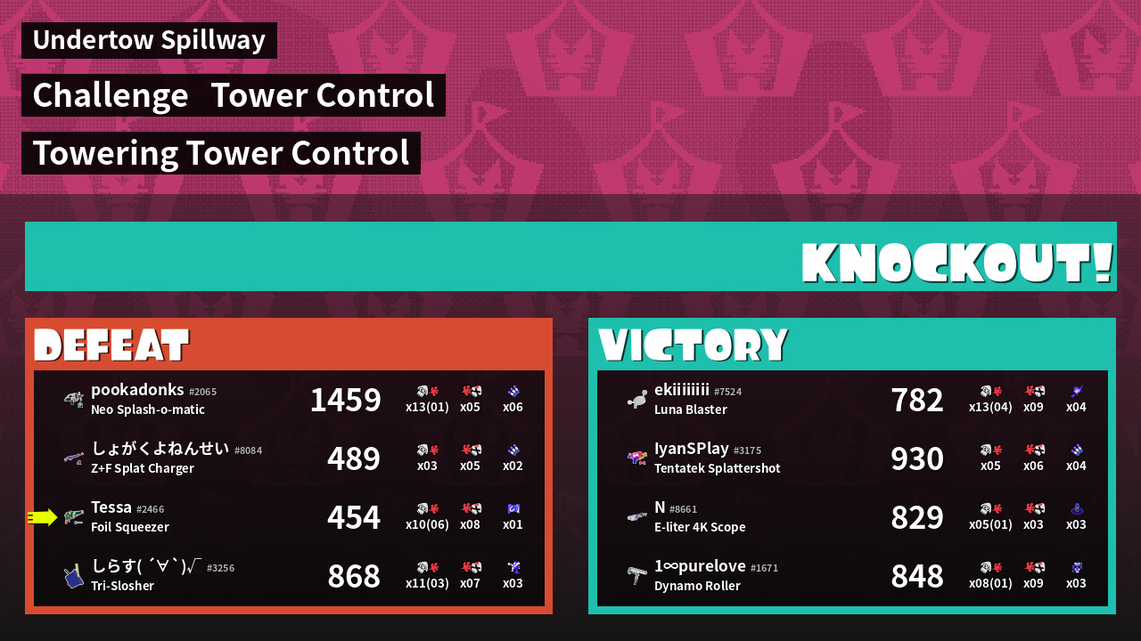 | Medals | #1 Score Booster #1 Splat Assister #1 Checkpoint Breaker | ||