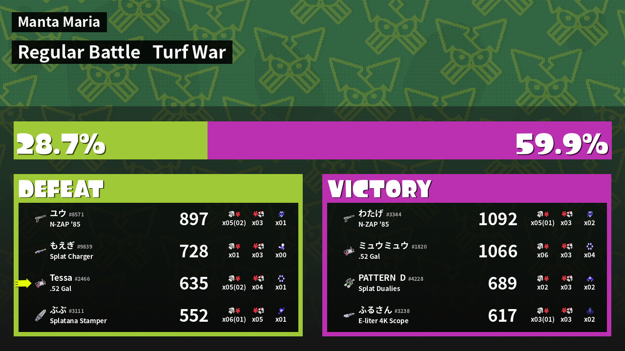 | Medals | #1 Super Jump Spot #1 Splat Assister #1 Base Defender | ||