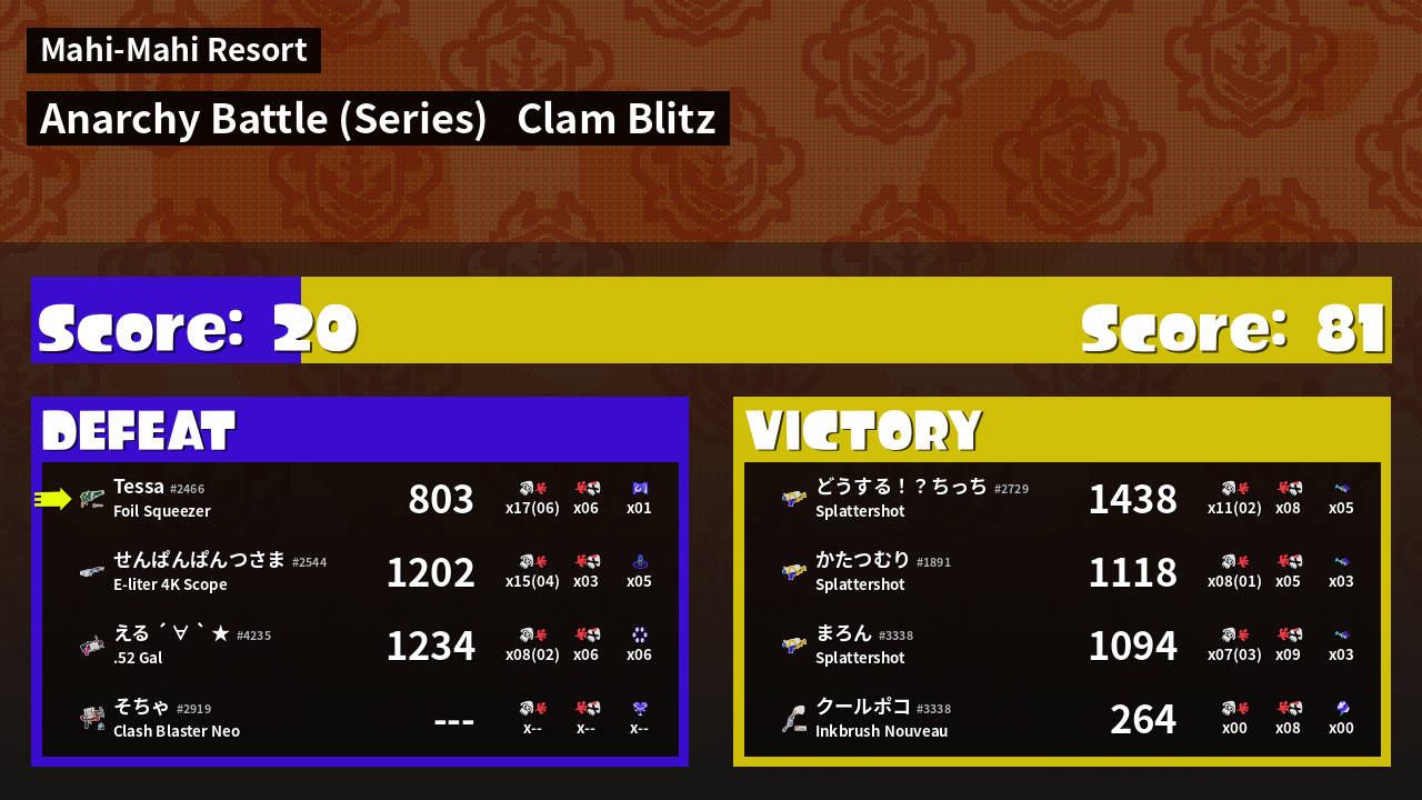| Mode | Clam Blitz - Anarchy Battle (Series) | ||
