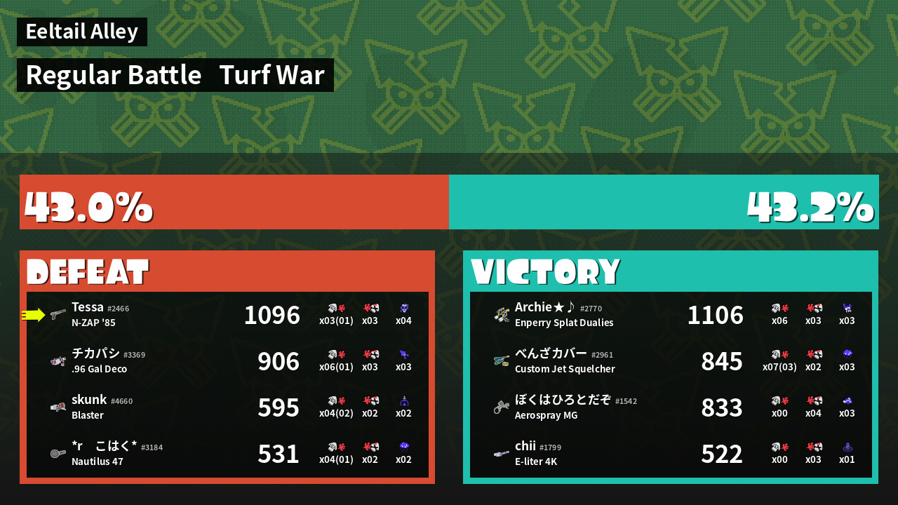 | Mode | Turf War - Regular Battle | ||