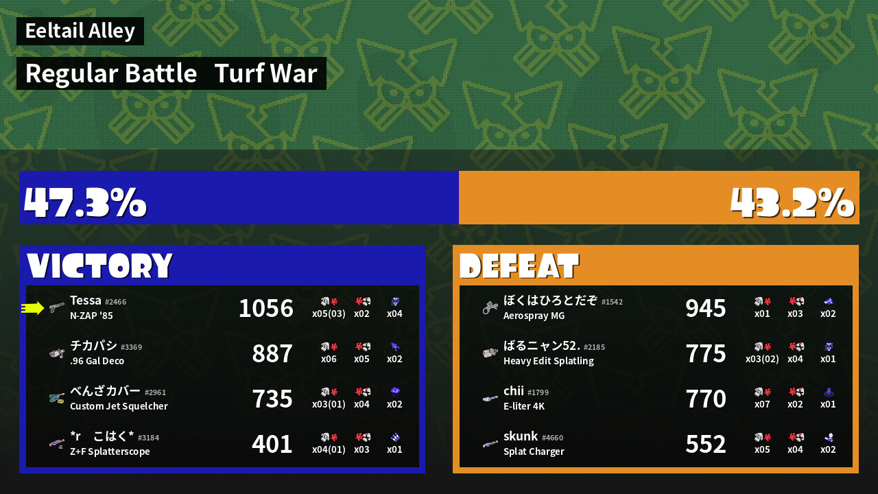 | Mode | Turf War - Regular Battle | ||