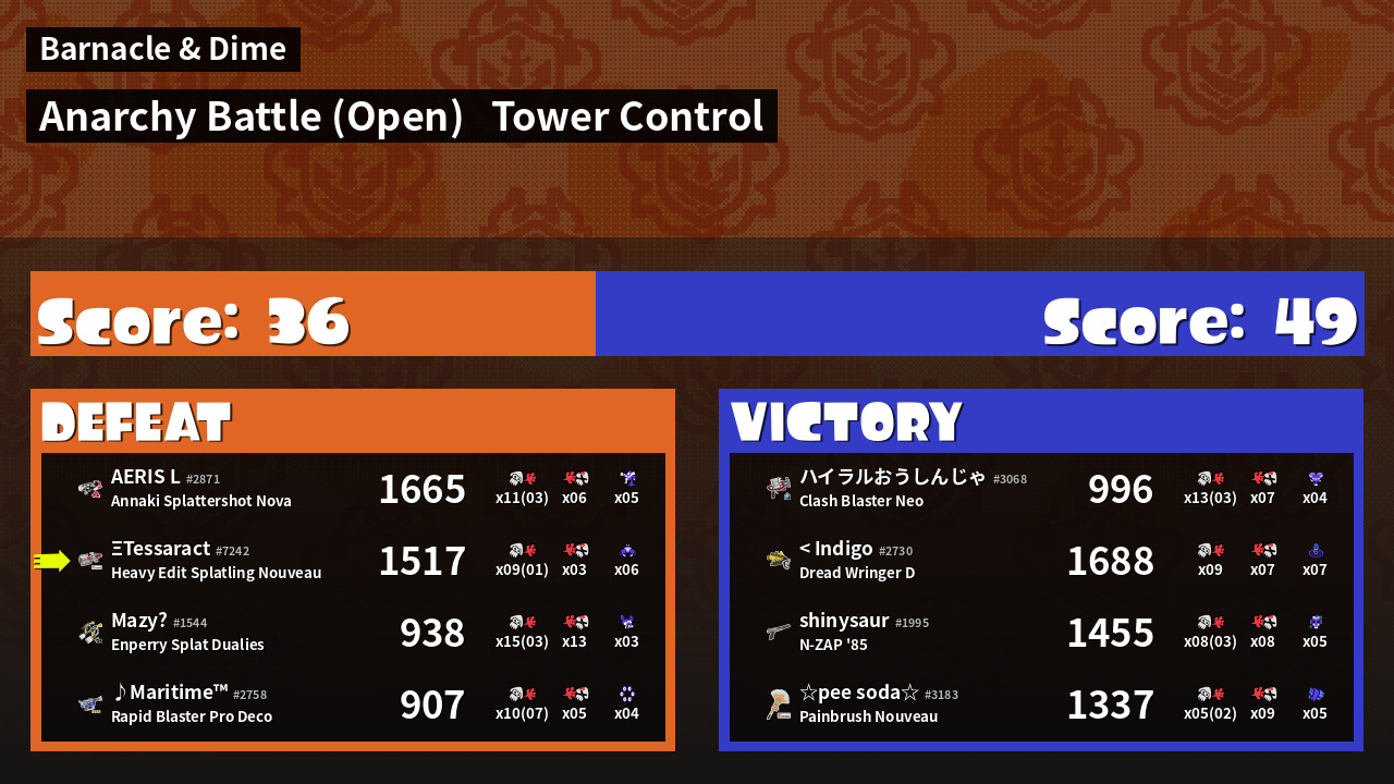 | Mode | Tower Control - Anarchy Battle (Open) | ||