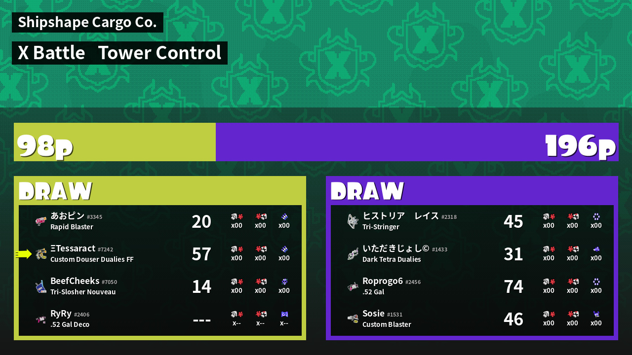 | Weapon | Custom Douser Dualies FF ( Burst Bomb / Triple Inkstrike) | ||