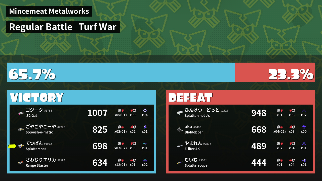 | Medals | #1 Splat Assister #2 Overall Splatter #2 Popular Target | ||