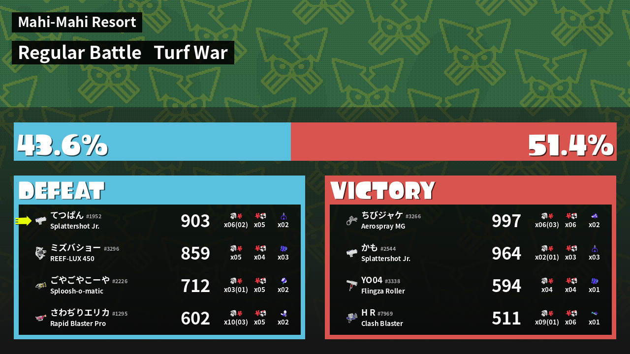| Name | Weapon | Inked |  k |  d | KR | Sp | |