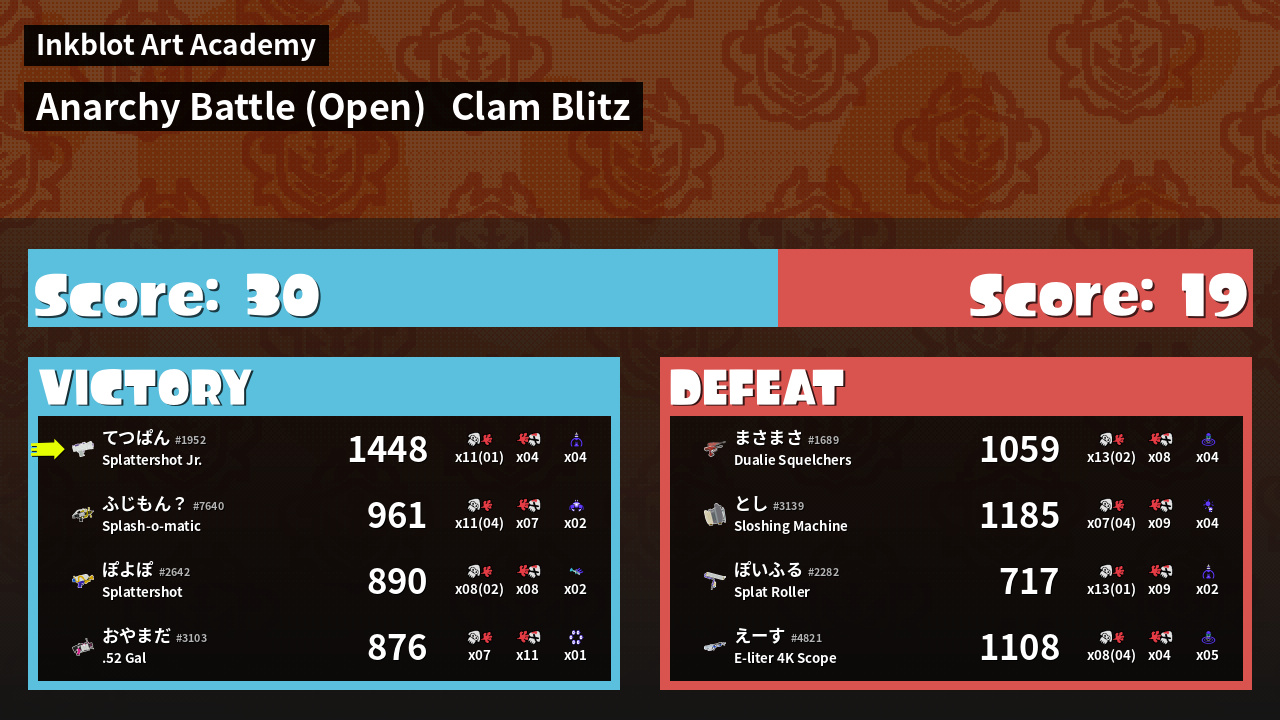 | Mode |  Clam Blitz -  Anarchy Battle (Open) | ||