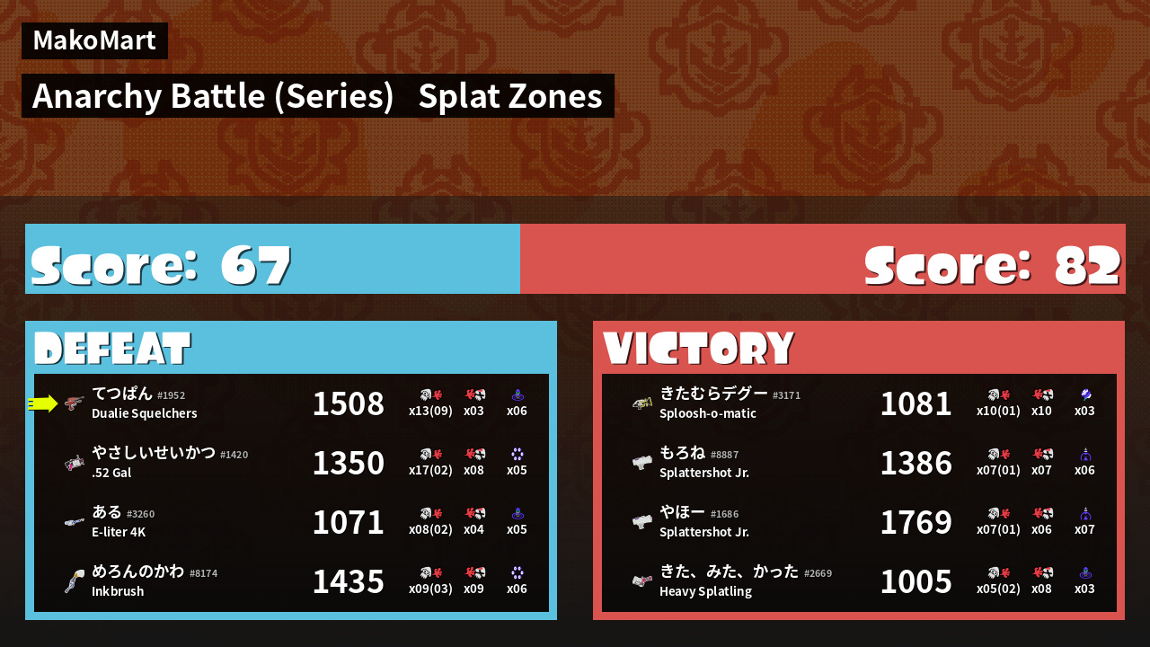 | Mode |  Splat Zones -  Anarchy Battle (Series) | ||
