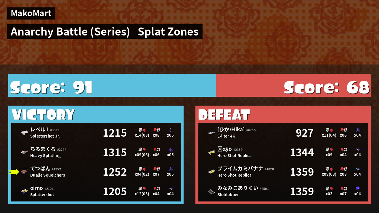 | Mode |  Splat Zones -  Anarchy Battle (Series) | ||