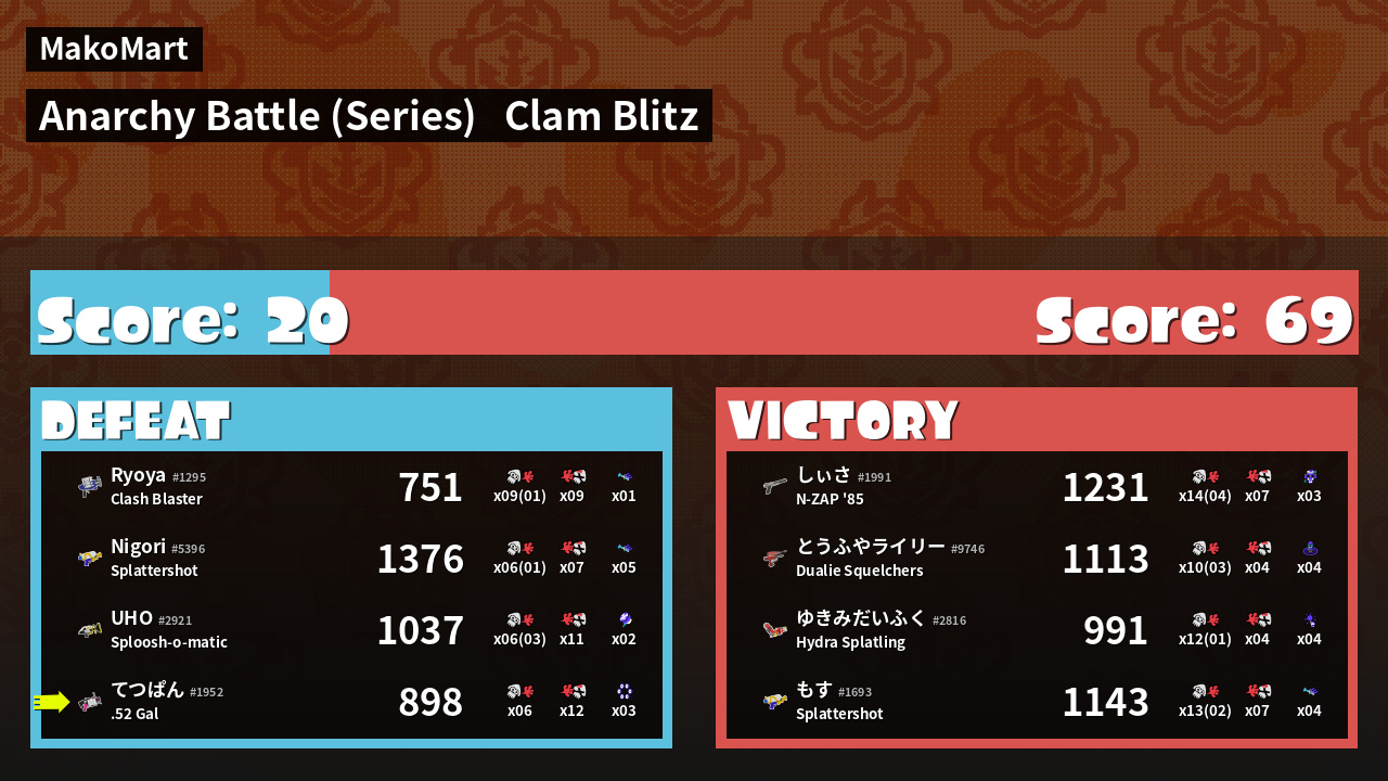 | Mode |  Clam Blitz -  Anarchy Battle (Series) | ||