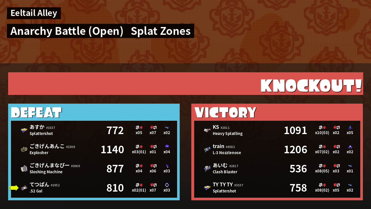 | バンカラな若者 あすか #1637 |  Splattershot     | 772 | 5 + 0 | 7 | 0.71 |  2 | |