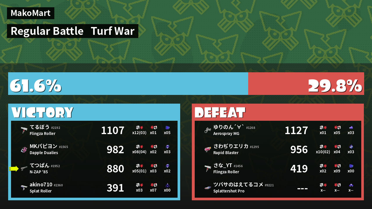 | こどくな若者 akino710 #2360 |  Splat Roller     | 391 | 3 + 0 | 7 | 0.43 |  0 | |