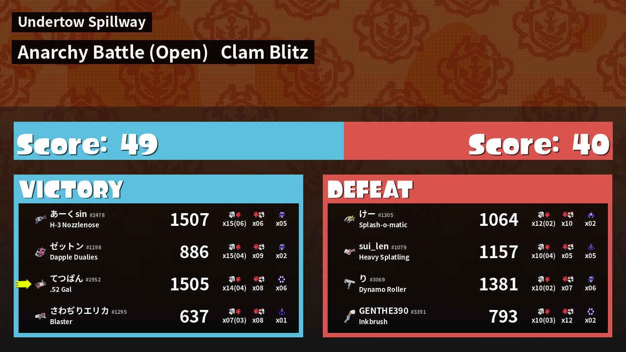 | Mode |  Clam Blitz -  Anarchy Battle (Open) | ||