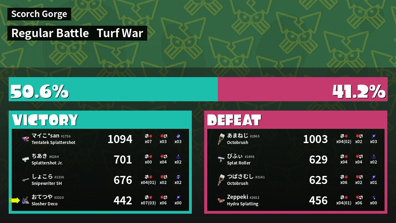 | Mode | Turf War - Regular Battle | ||
