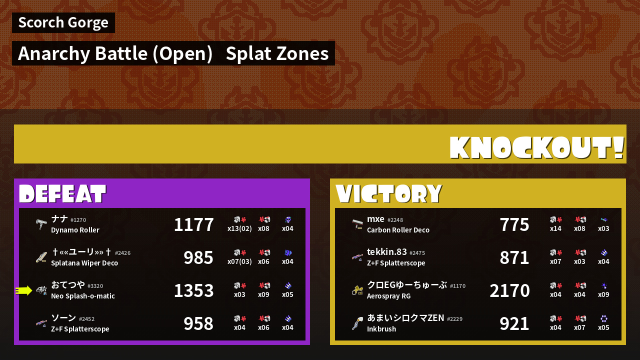 | Mode | Splat Zones - Anarchy Battle (Open) | ||