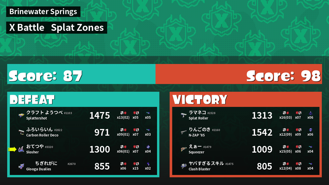 | Mode | Splat Zones - X Battle | ||