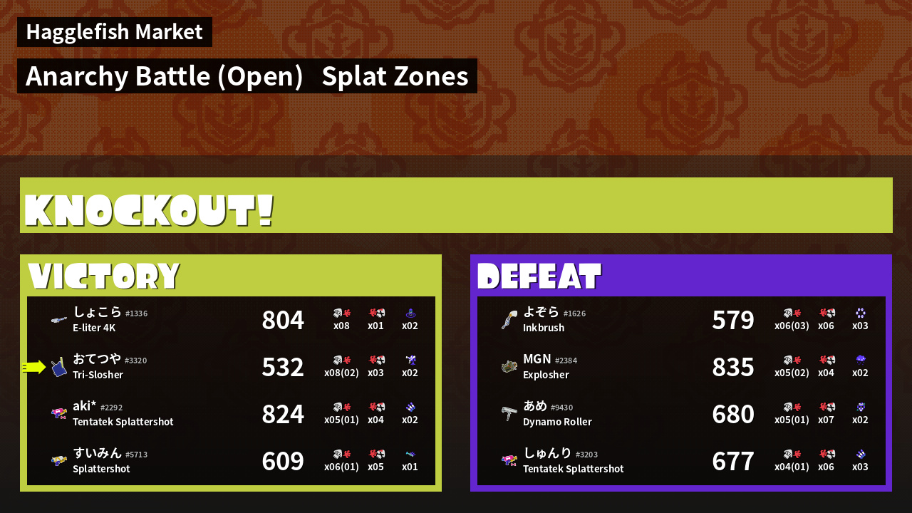 | Mode | Splat Zones - Anarchy Battle (Open) | ||