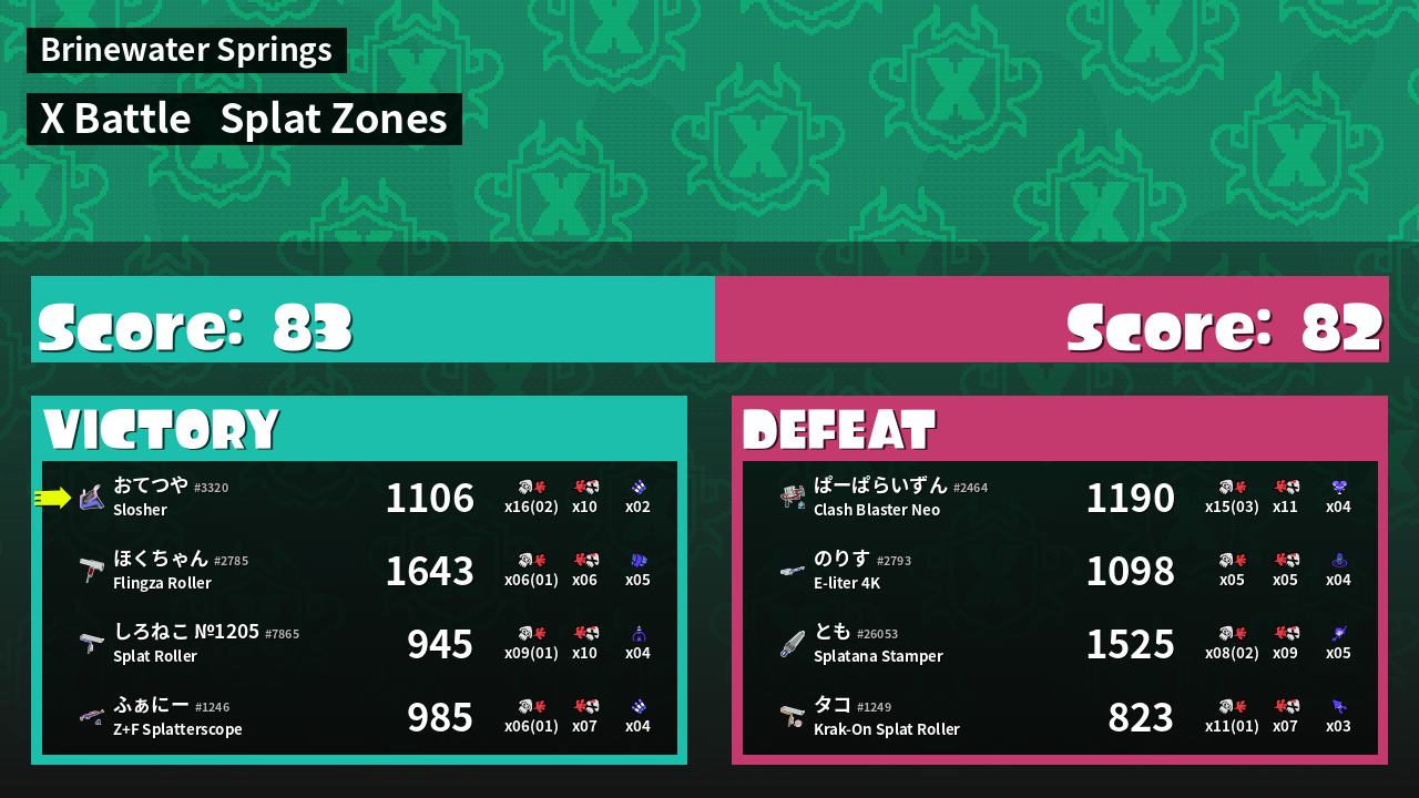 | Medals | #1 Overall Splatter #1 Splat Zone Guard #1 Popular Target | ||