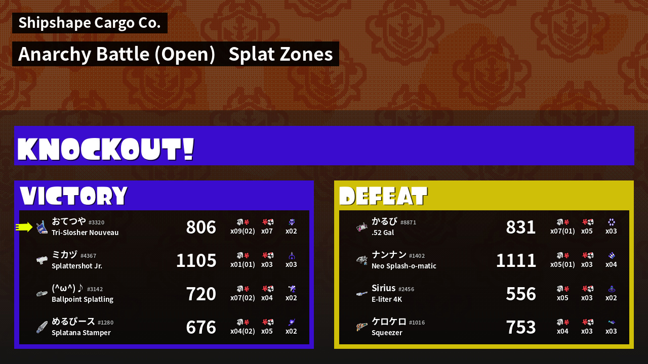 | Mode | Splat Zones - Anarchy Battle (Open) | ||