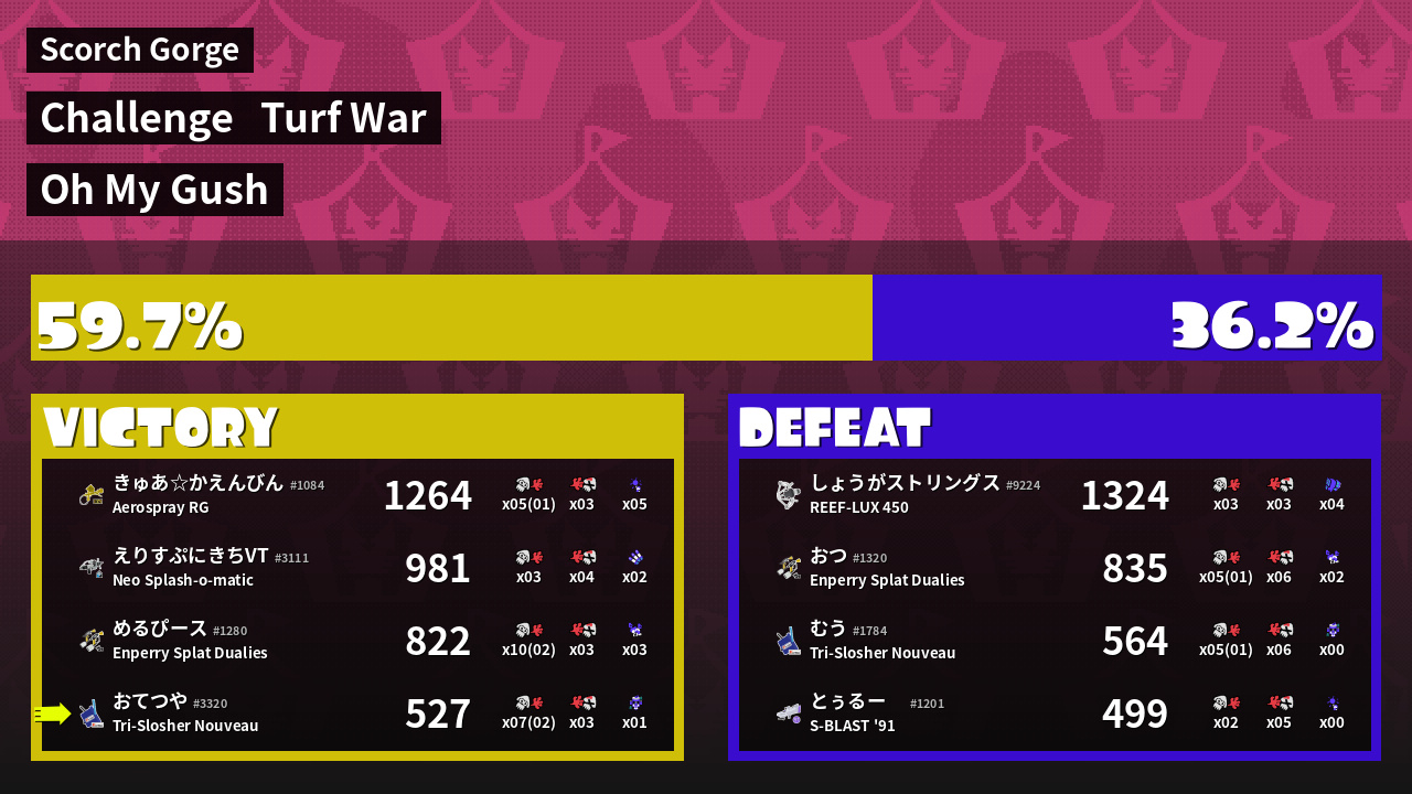 | Mode | Turf War - Challenge | ||