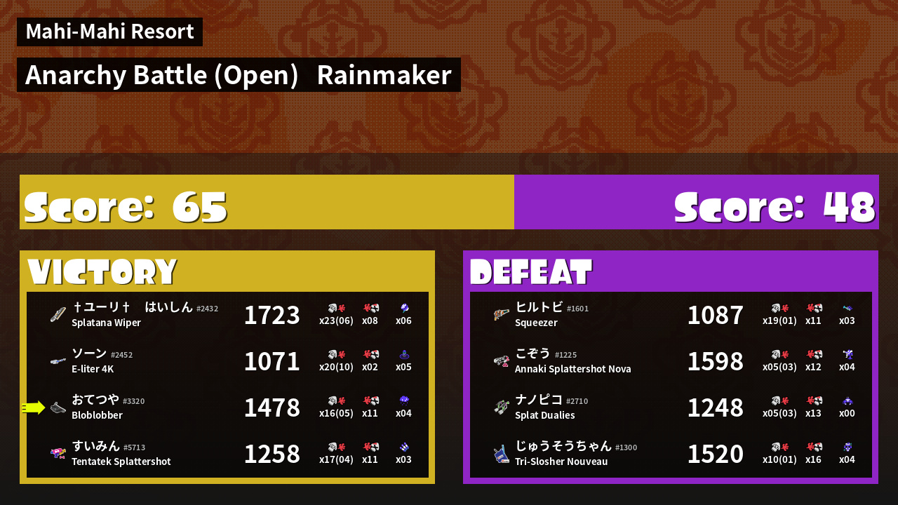 | Mode | Rainmaker - Anarchy Battle (Open) | ||