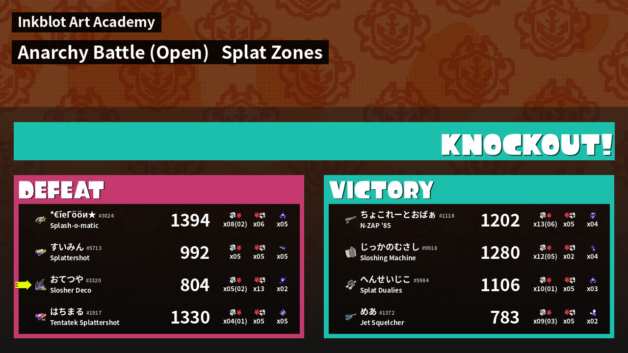 | Mode | Splat Zones - Anarchy Battle (Open) | ||