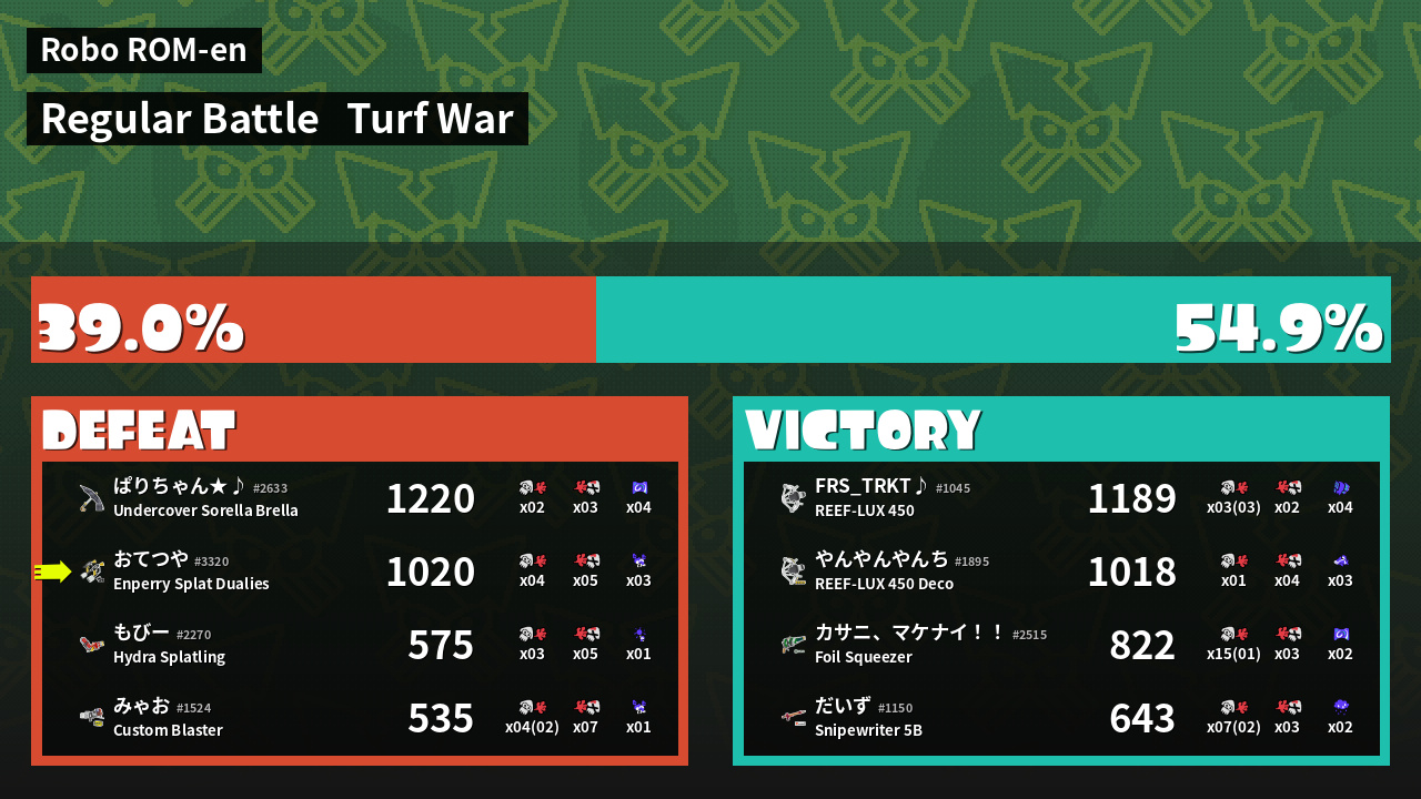 | Weapon | Enperry Splat Dualies ( Curling Bomb / Triple Splashdown) | ||