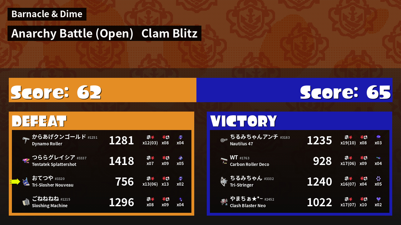 | Mode | Clam Blitz - Anarchy Battle (Open) | ||