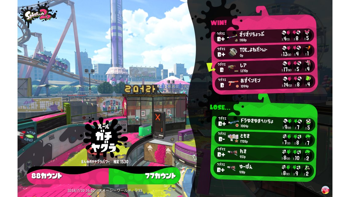 | Name | Weapon | Level | Rank | Inked | k+a/sp | k/d |