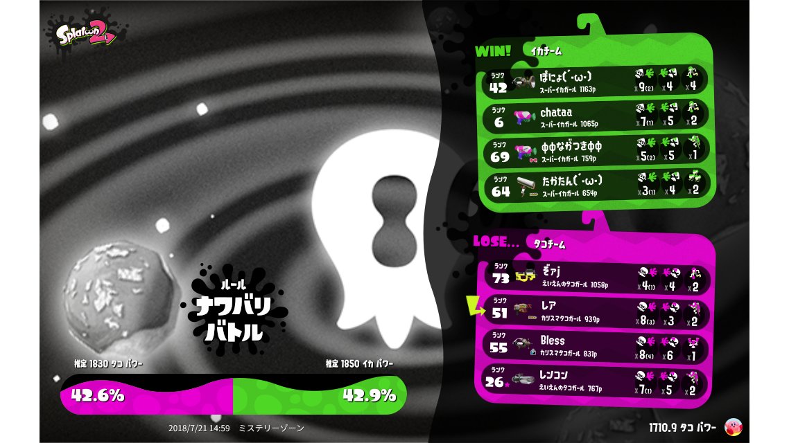 | Splatfest Power | 1,710.9 | ||||||||||||||||||||||||||||||||||