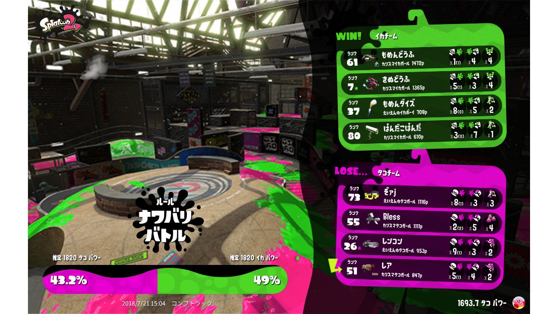 | Splatfest Power | 1,693.7 | ||||||||||||||||||||||||||||||||||