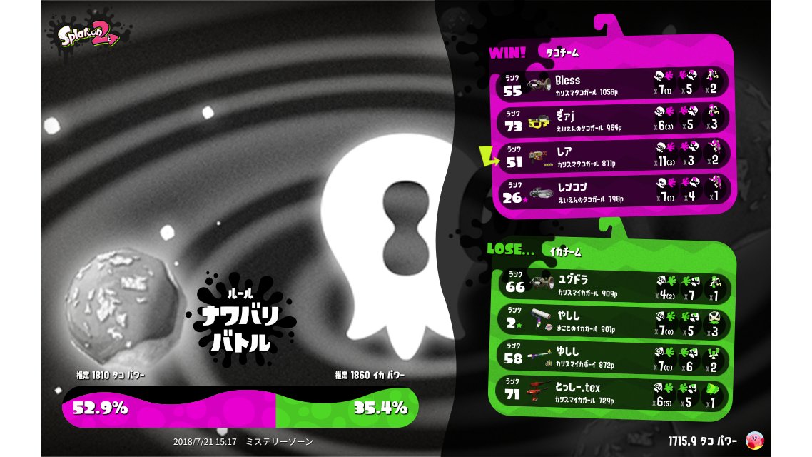 | Splatfest Power | 1,715.9 | ||||||||||||||||||||||||||||||||||