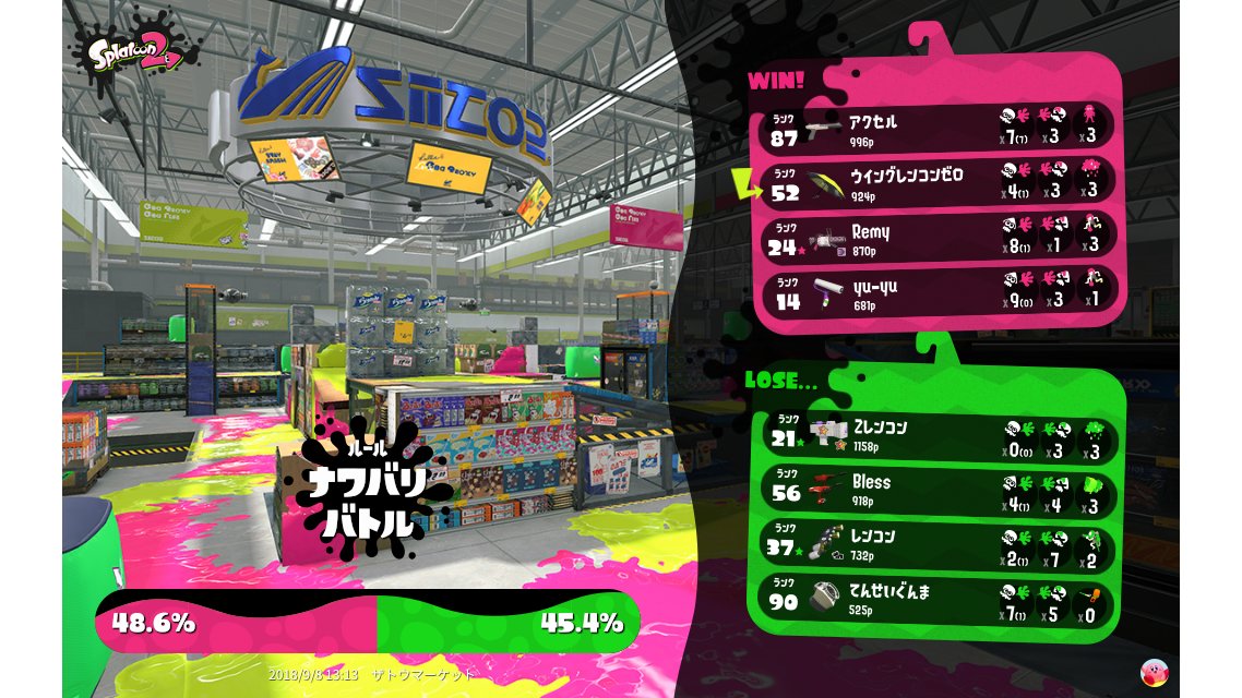 | Mode | Turf War - Regular Battle | ||||||||||||||||||||||||||||