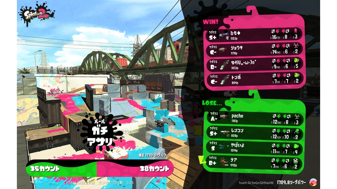 | Name | Weapon | Level | Rank | Inked | k+a/sp | k/d |