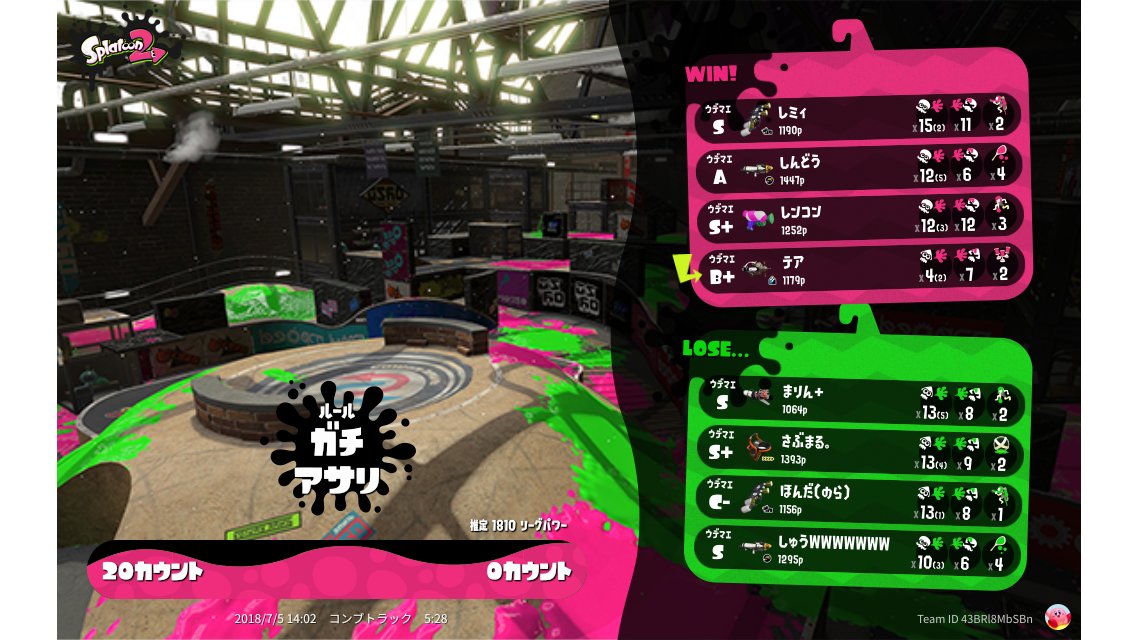 | Name | Weapon | Level | Rank | Inked | k+a/sp | k/d |