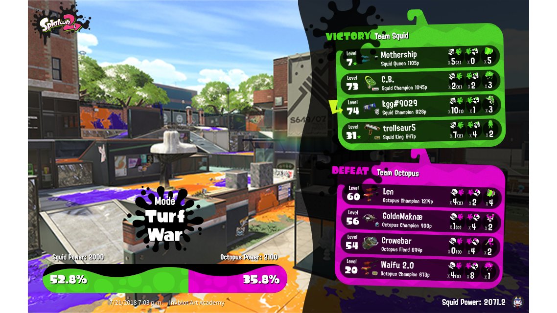| Splatfest Power | 2,071.2 | |||||||||||||||||||||||||||||||||||||
