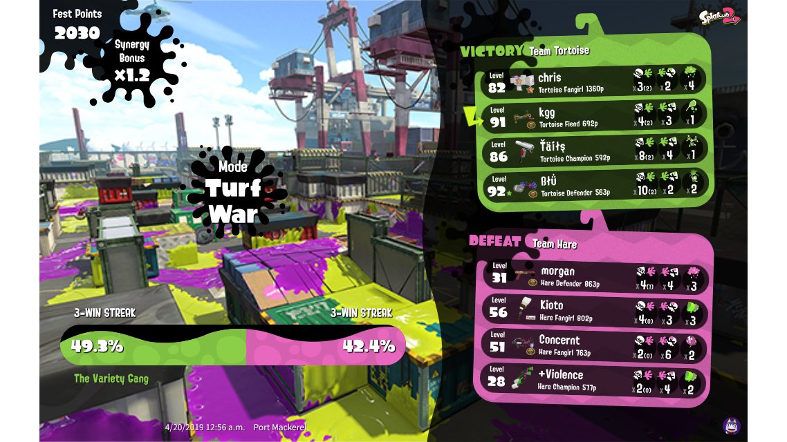 | Mode | Turf War - Splatfest (Team) | |||||||||||||||||||||||||||||||