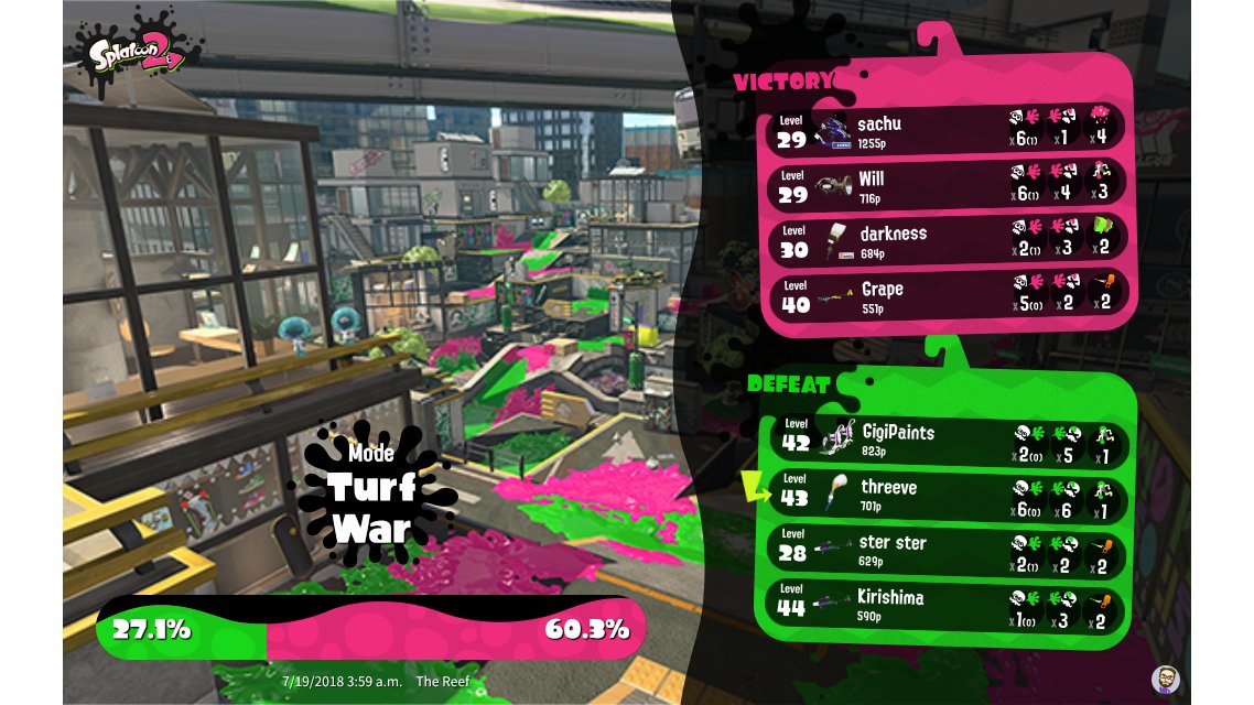| Mode | Turf War - Regular Battle | ||||||||||||||||||||||||||||||||||||||||