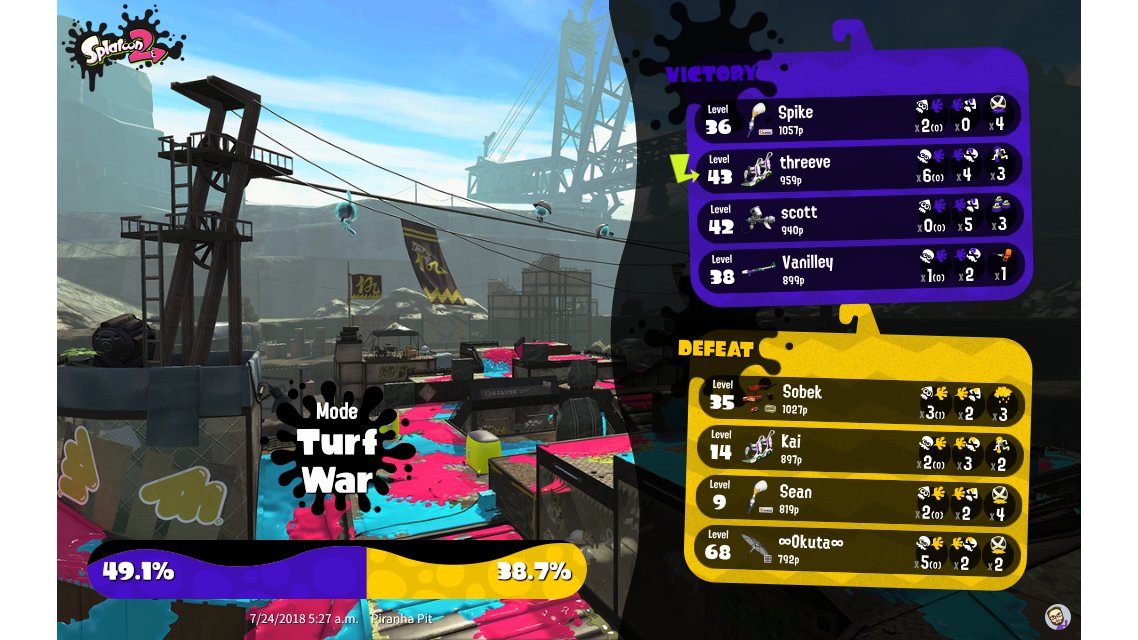 | Mode | Turf War - Regular Battle | |||||||||||||||||||||||||||||||||||||