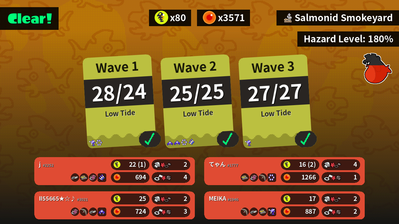 | Boss Salmonid | 12 | 13 | 11 | 16 |