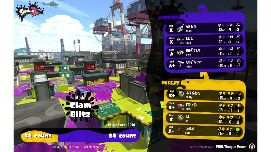 Mode | Clam Blitz - League Battle (Twin) | |||||||||||||||||||||||||||||||||||||||||||
