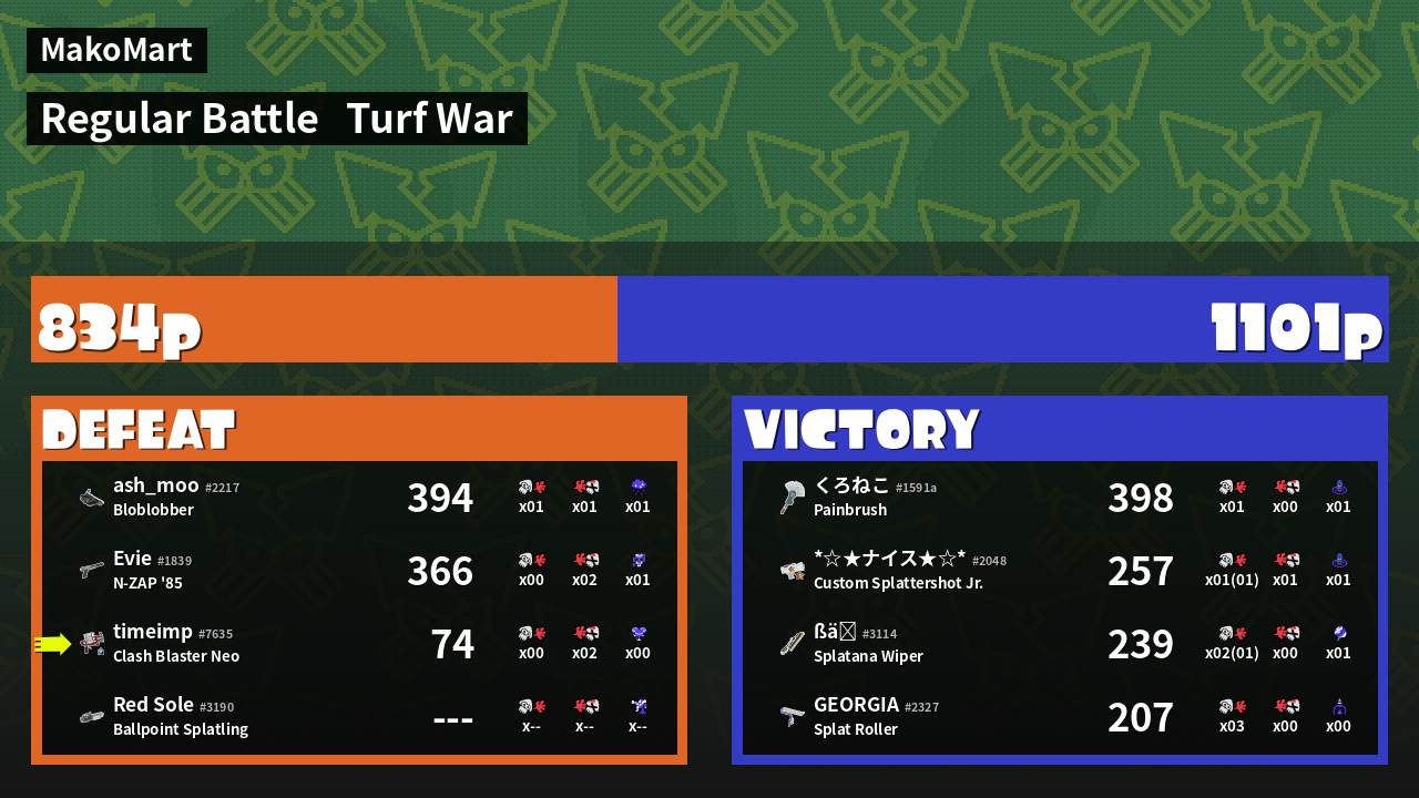 Results of timeimp's Battle