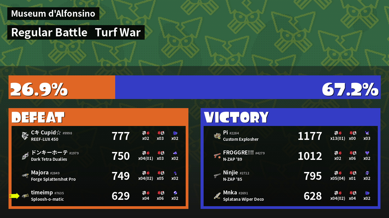 | Medals | #1 Overall Splatter #1 Enemy-Base Inker #1 Super Jump Spot | ||