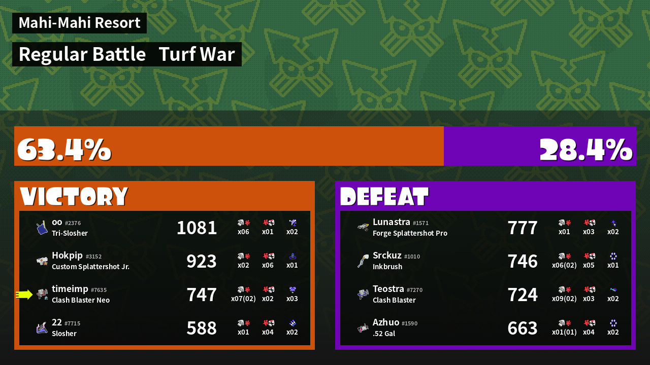 | Medals | #1 Overall Splatter #1 Enemy-Base Inker #1 Super Jump Spot | ||