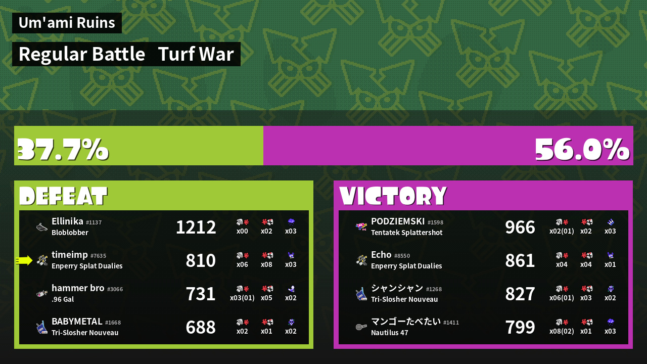 | Medals | #1 Overall Splatter #1 Enemy-Base Inker #1 Enemy Splatter | ||
