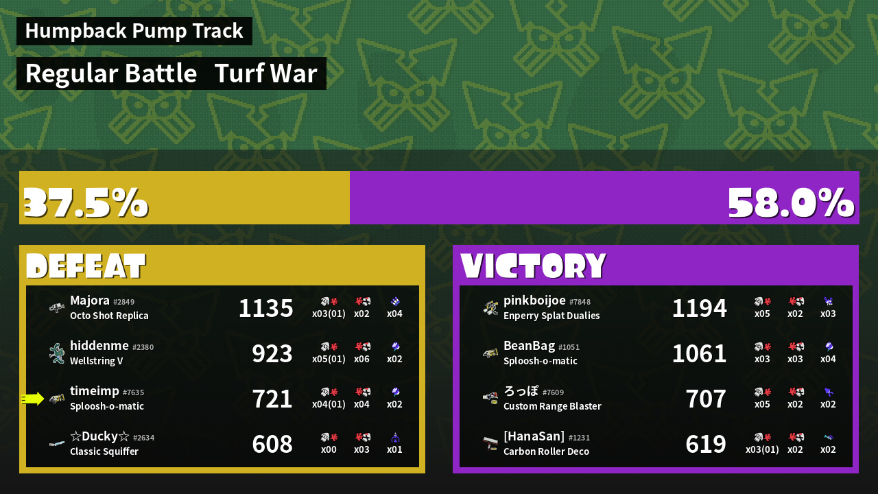 | Medals | #1 Enemy-Base Inker #1 Super Jump Spot #1 Splat Assister | ||