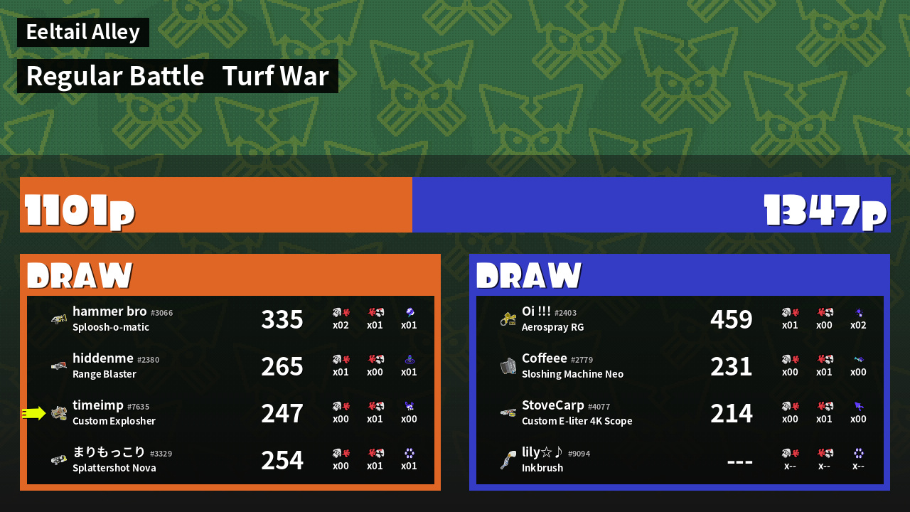 | Mode | Turf War - Regular Battle | ||