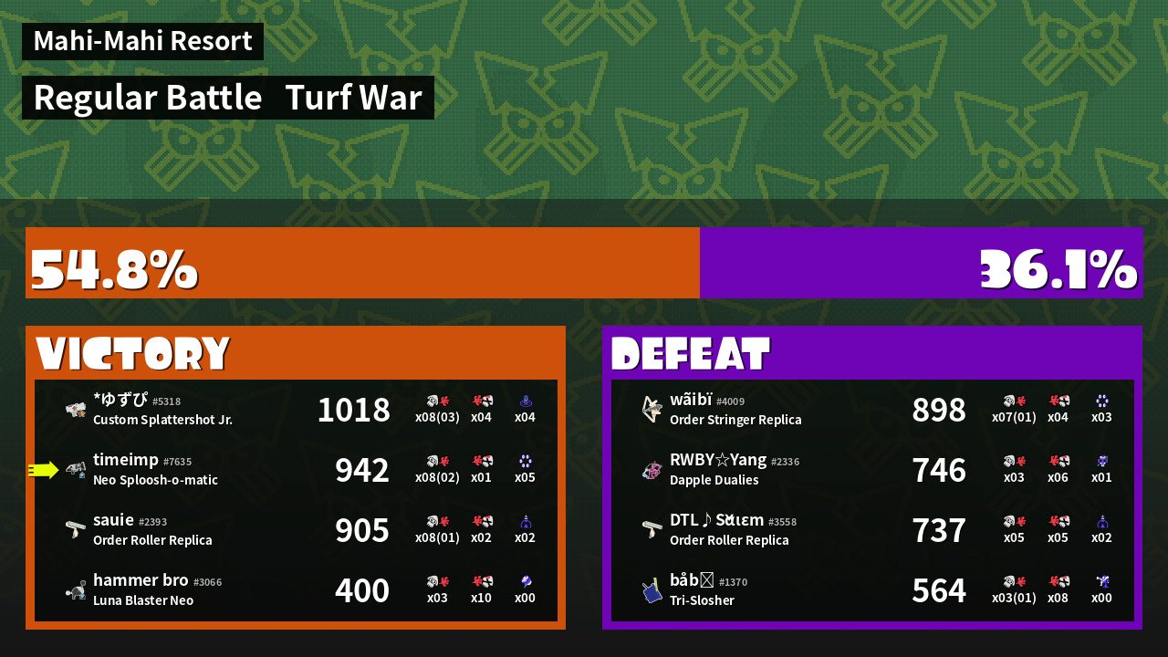| Medals | #1 Overall Splatter #1 Home-Base Inker #1 Enemy-Base Inker | ||