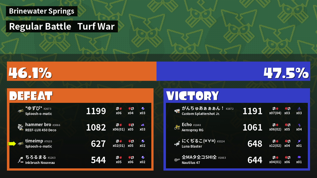 | Medals | #1 Enemy-Base Inker #1 Splat Assister #2 Super Jump Spot | ||